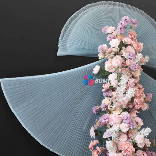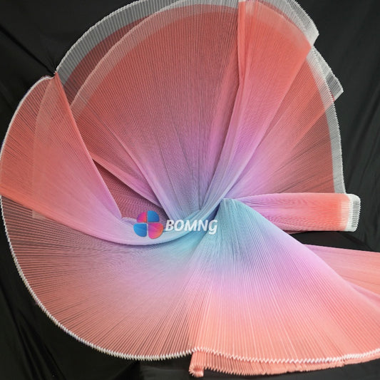 Bomng Gradient Orange Blue Pleated Organza Crinkle Fabric With Rigid And Wide Trim Stage Handmade Dress Designer Fabrics