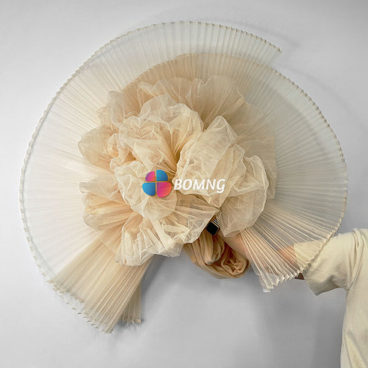 Bomng Beige Great Pleated Organza Crinkle Fabric 6324