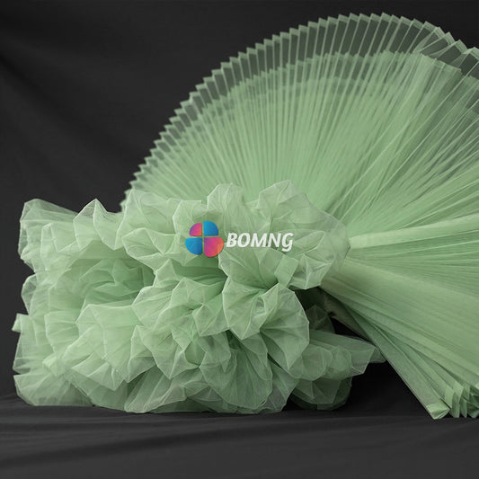 Bomng Light Green Great Pleated Organza Crinkle Fabric 6324