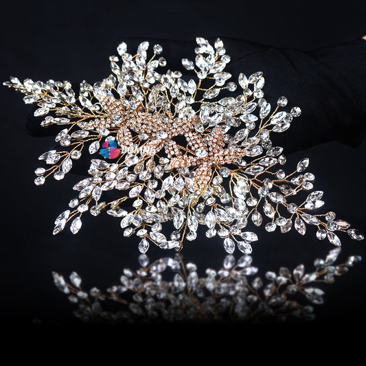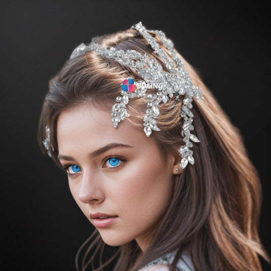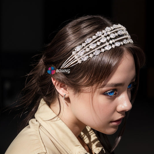 Bomng exquisite wide-rimmed multi-layered luxury diamond-studded crown headband