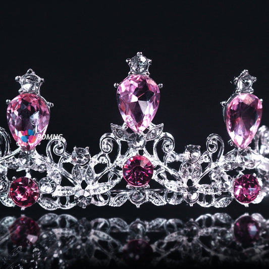 Bomng Temperament Luxury Crystal Pink Diamond Bridal Crown Headband