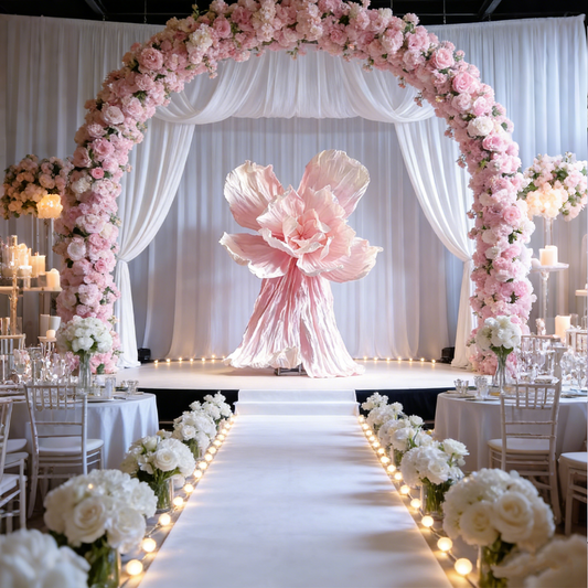 Not every statement belongs on a table. Majestic Bloom is our collection of large-scale florals designed to hang—transforming walls, ceilings, and empty spaces into moments of quiet drama. Handcrafted from paper, fabric, and EVA, each piece is built to command attention from any angle, turning what was once blank into something unforgettable.