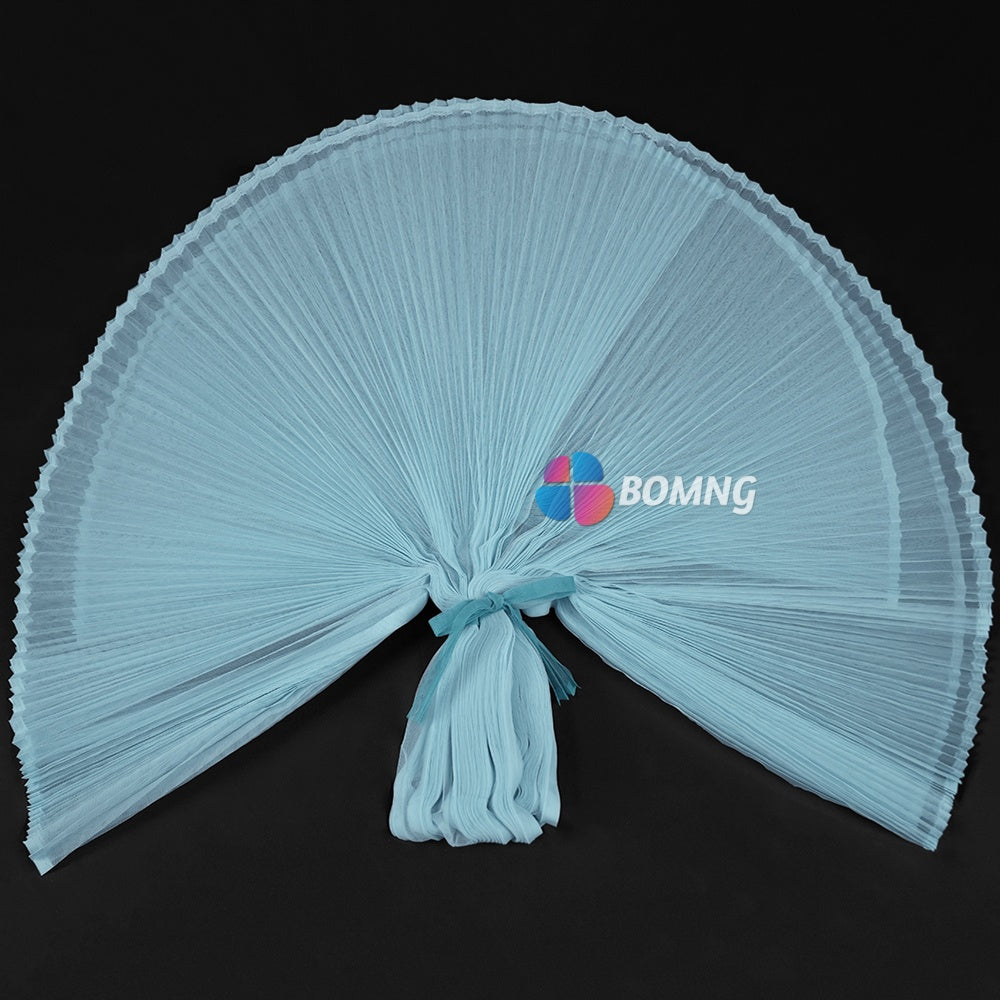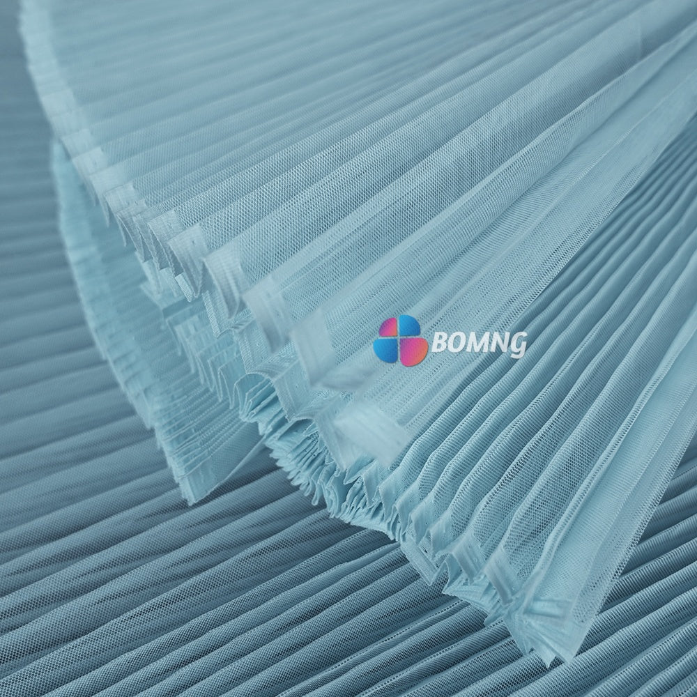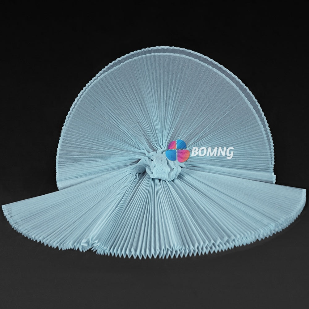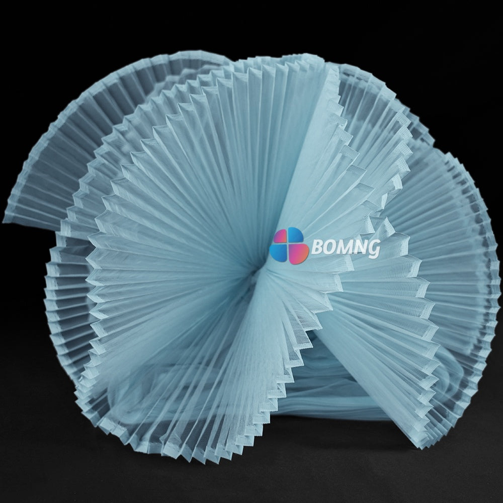 Introducing our Clear Sky Blue Great Pleated Organza Crinkle Fabric . This exquisite fabric boasts elegant pleats and a delicate organza texture that will add a touch of luxury to any project. Create stunning drapes, gowns, or other high-end pieces with this premium fabric. Elevate your creations with our Great Pleated Organza Crinkle Fabric.