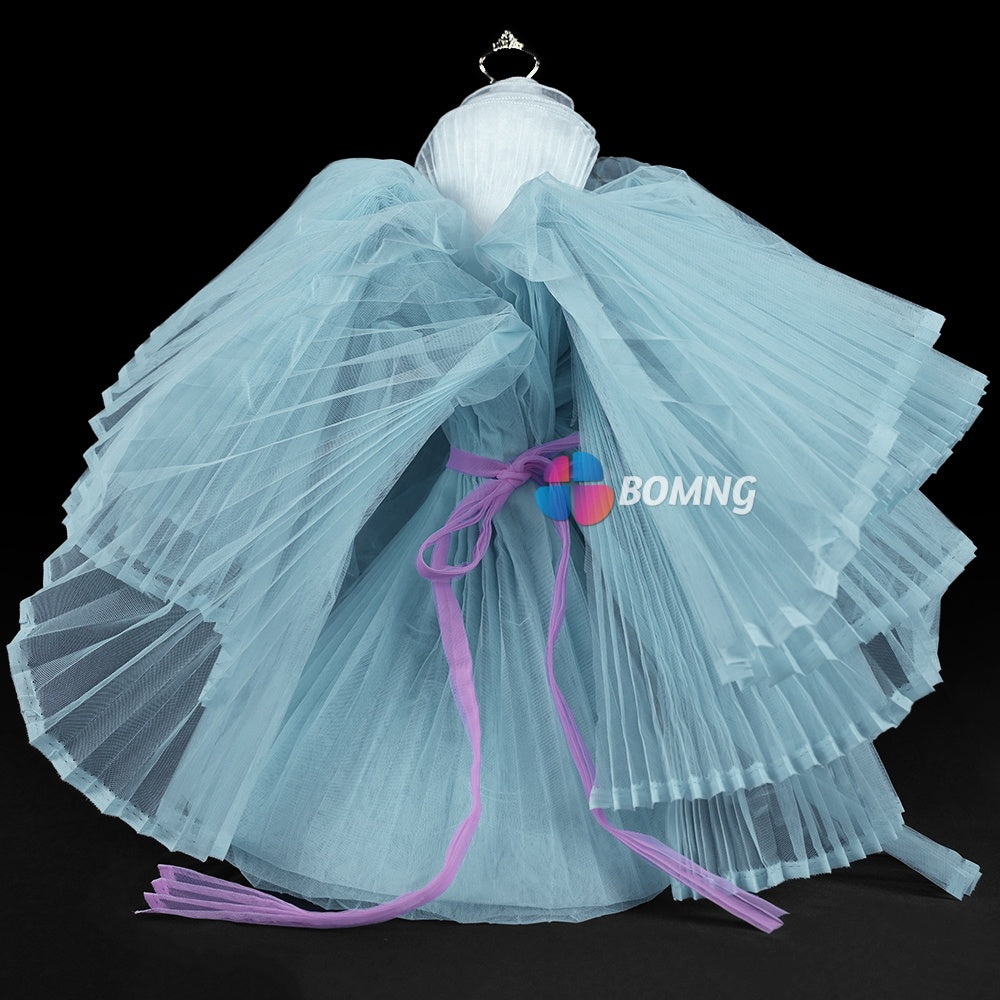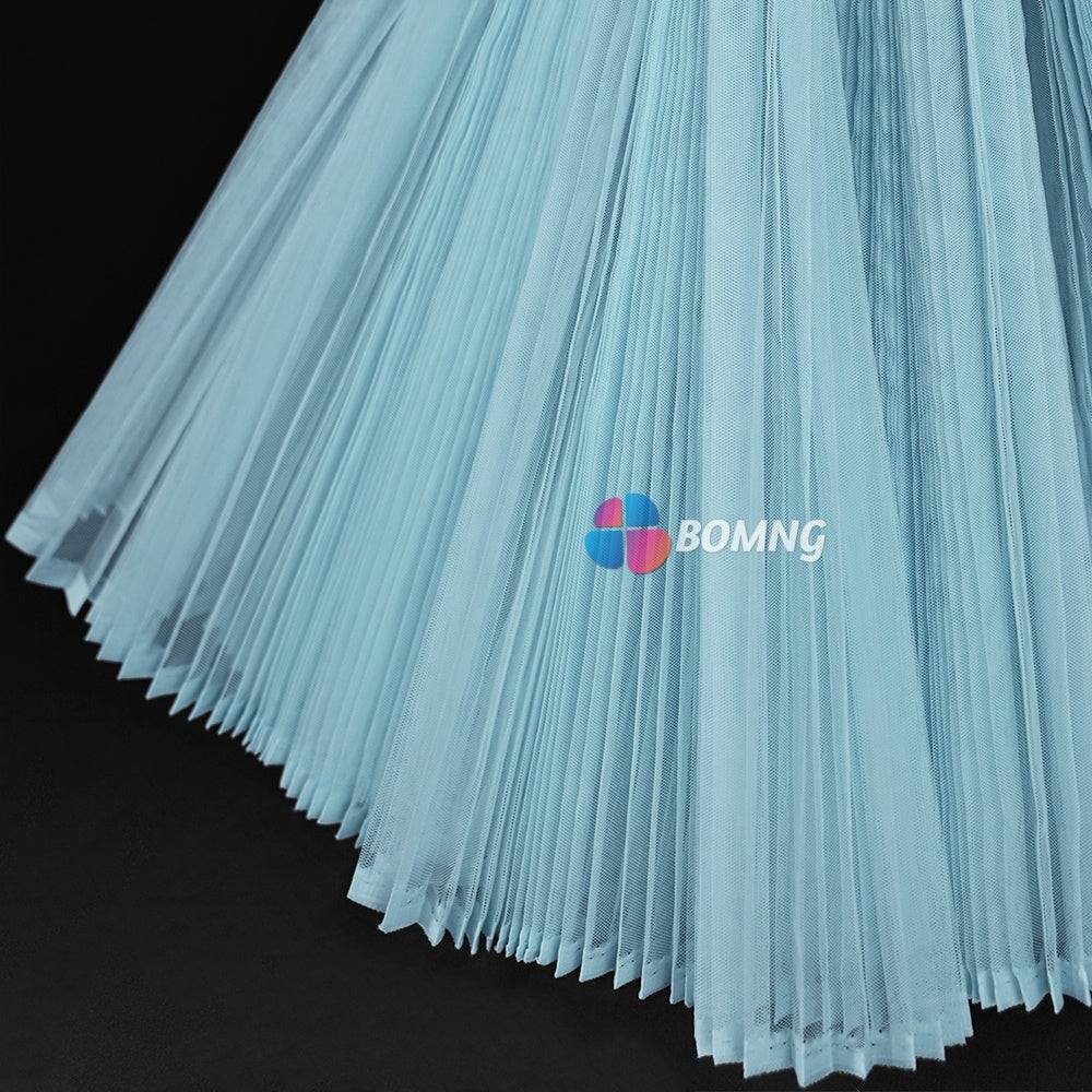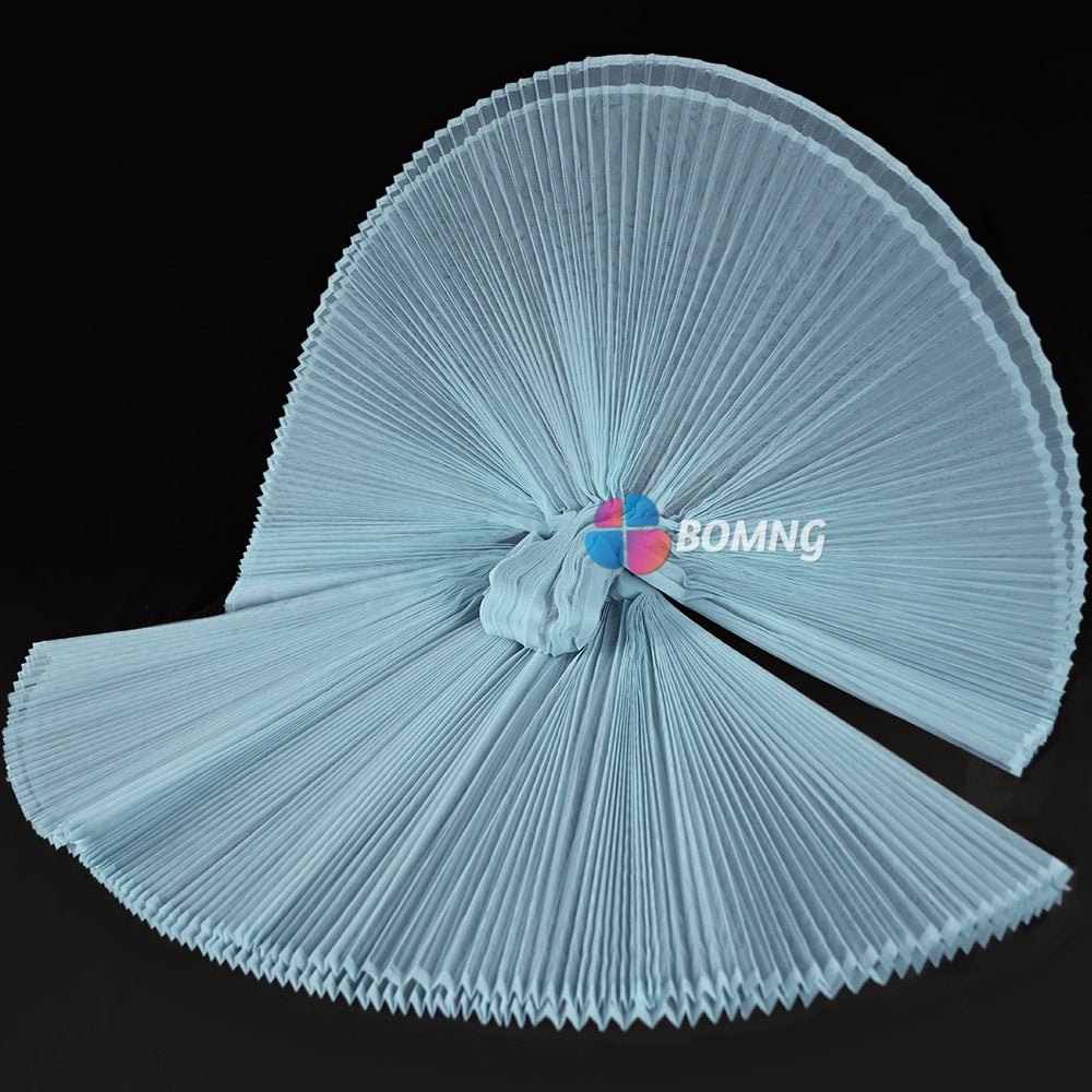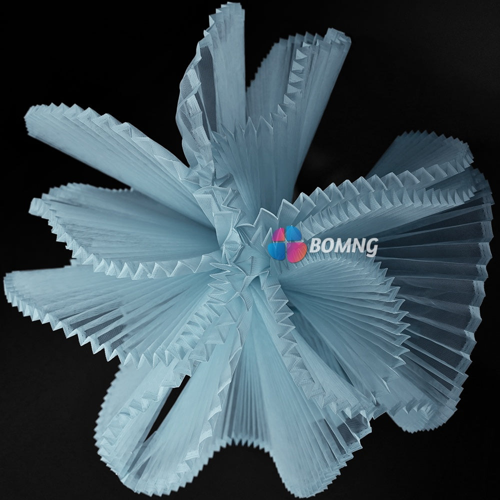 Introducing our Clear Sky Blue Great Pleated Organza Crinkle Fabric . This exquisite fabric boasts elegant pleats and a delicate organza texture that will add a touch of luxury to any project. Create stunning drapes, gowns, or other high-end pieces with this premium fabric. Elevate your creations with our Great Pleated Organza Crinkle Fabric.