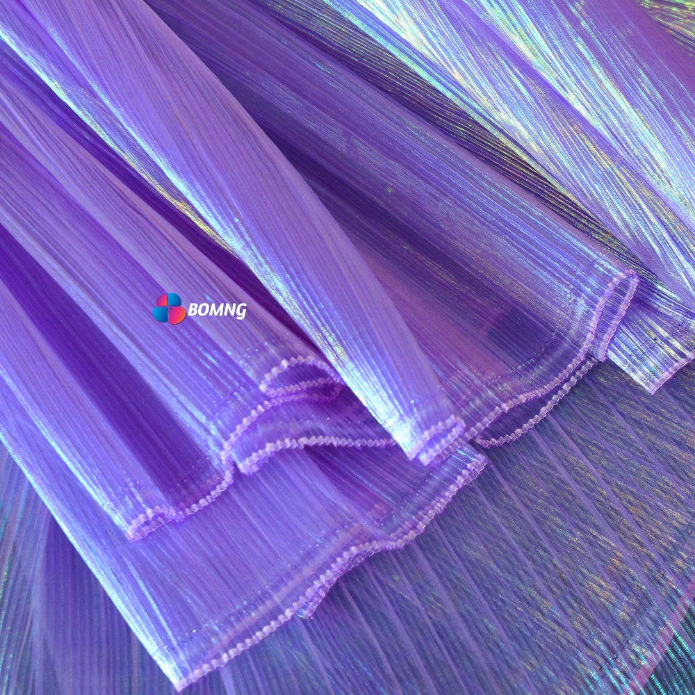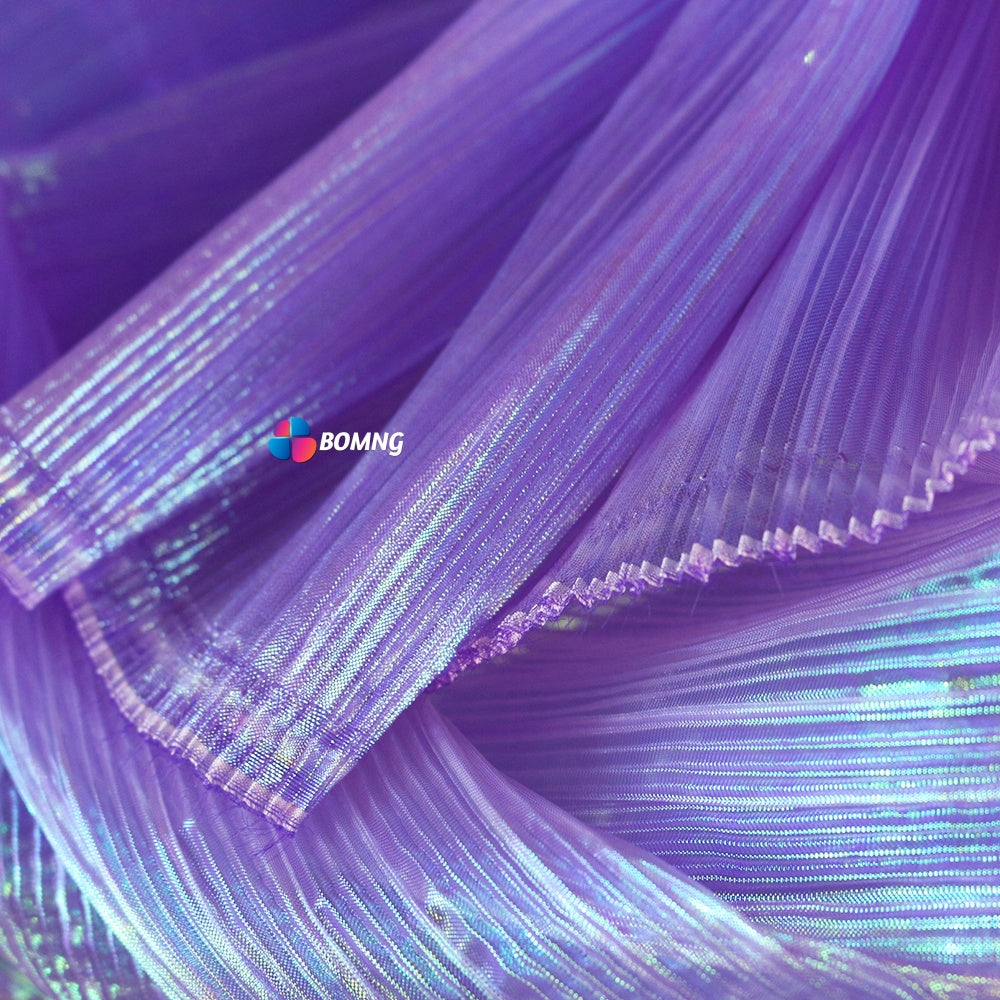 Bomng Deep Purple Mermaid Texture Pleated Organza Fabric Wedding Decoration Wedding Dress Design