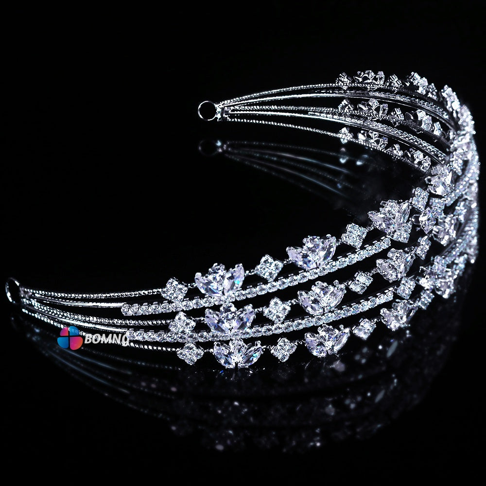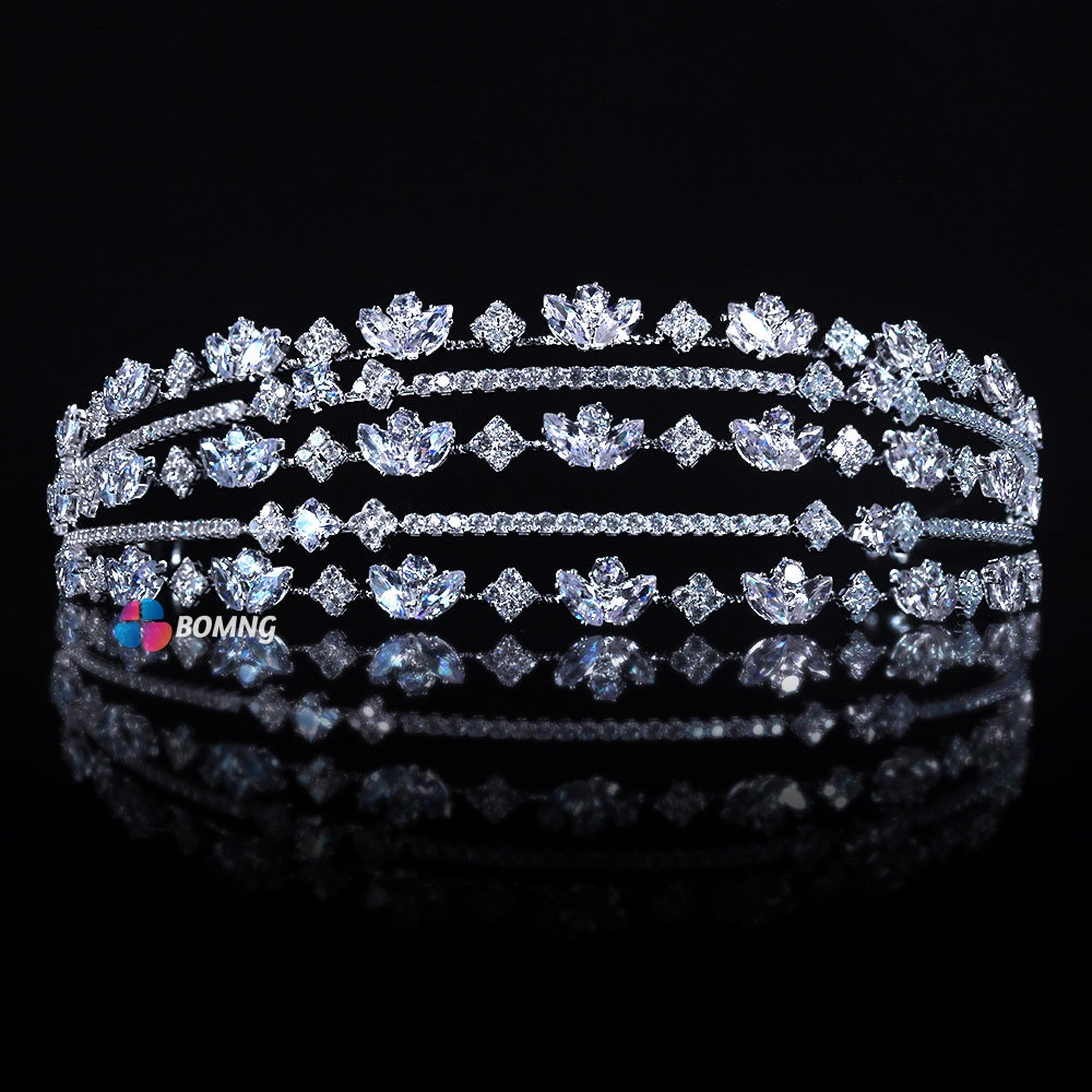 Bomng exquisite wide-rimmed multi-layered luxury diamond-studded crown headband
