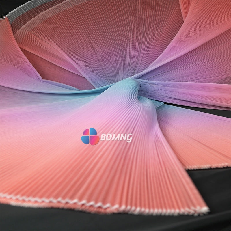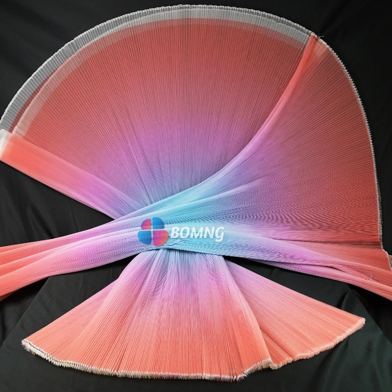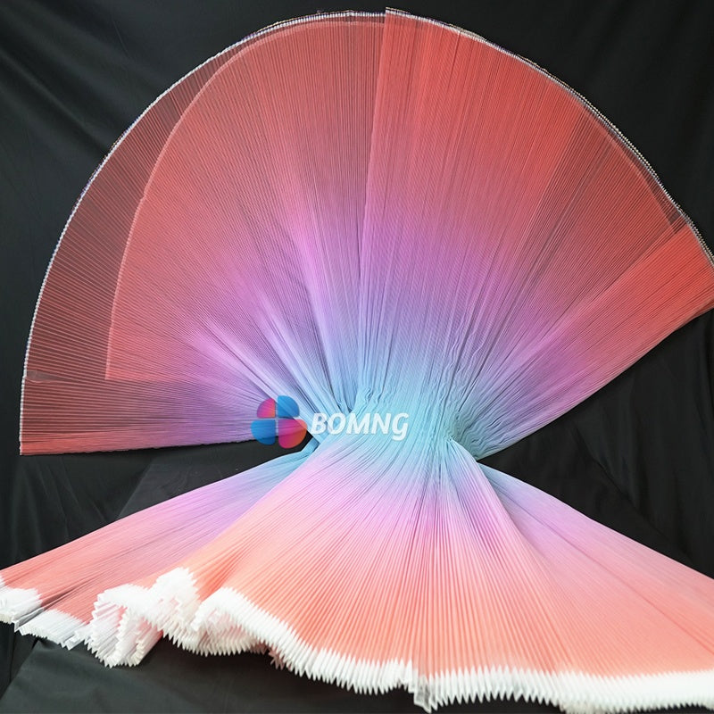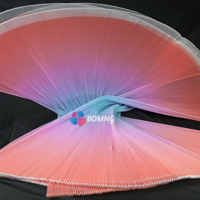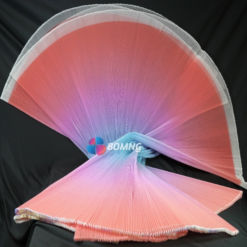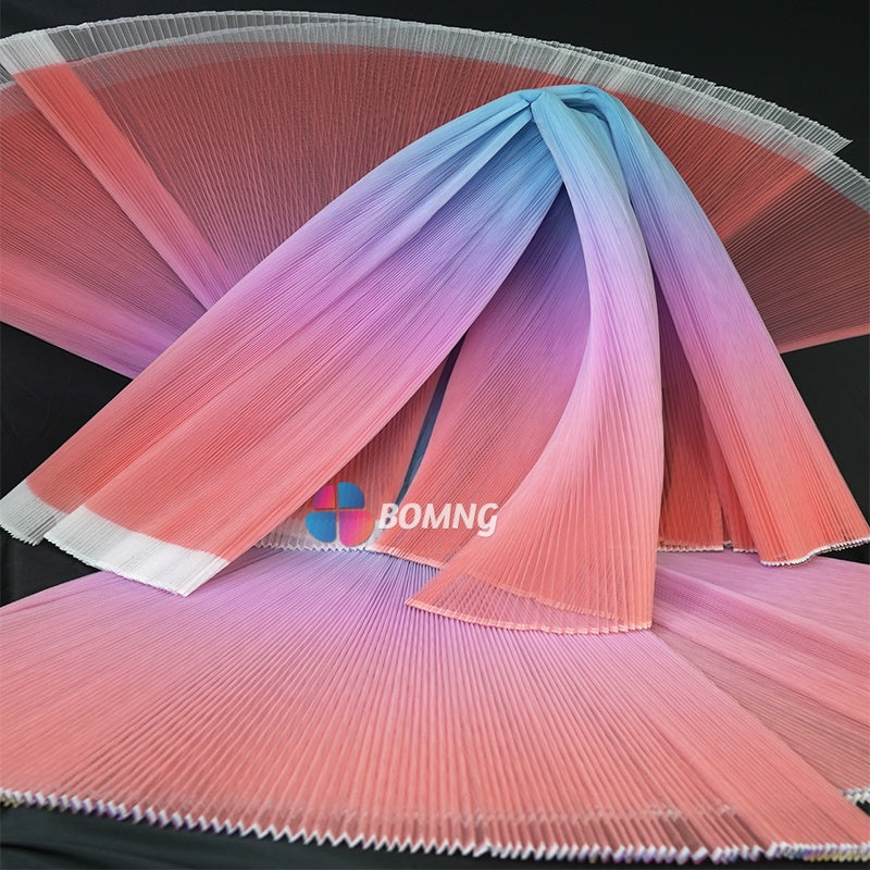Bomng Gradient Orange Blue Pleated Organza Crinkle Fabric With Rigid And Wide Trim Stage Handmade Dress Designer Fabrics