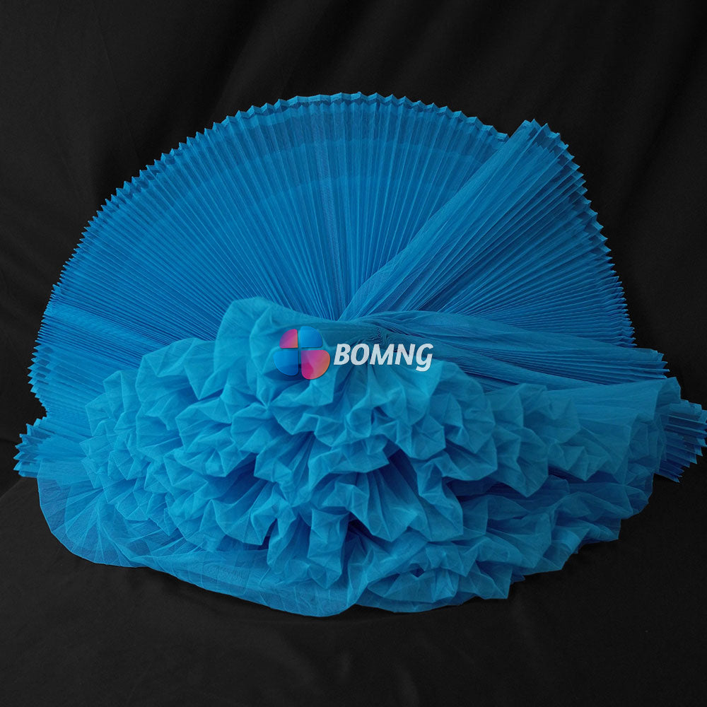 Bomng Lake Blue Great Pleated Organza Crinkle Fabric 6324