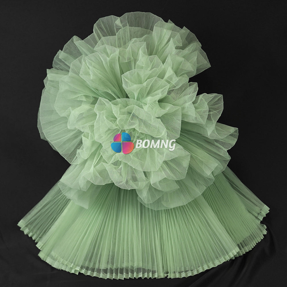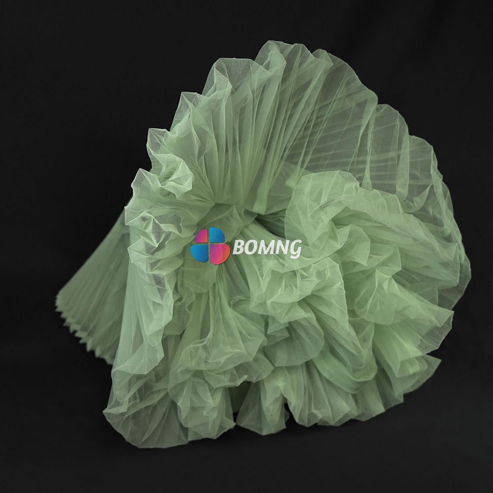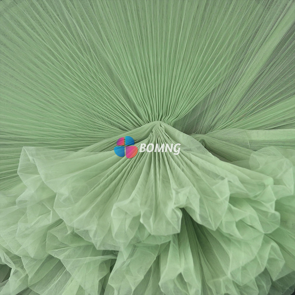 Bomng Light Green Great Pleated Organza Crinkle Fabric 6324