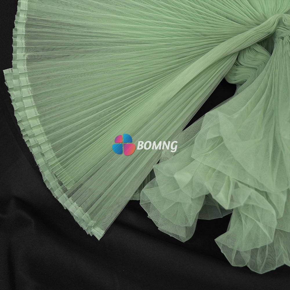 Indulge in luxury with our Light Green Great Pleated Organza Crinkle Fabric. This high-quality fabric features delicate pleats and a soft, crinkled texture, adding dimension and sophistication to any garment or decor. Elevate your style with this elegant and exclusive fabric.