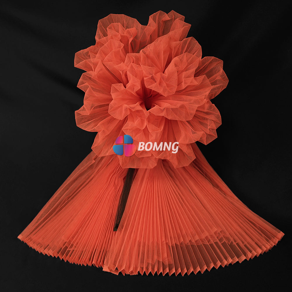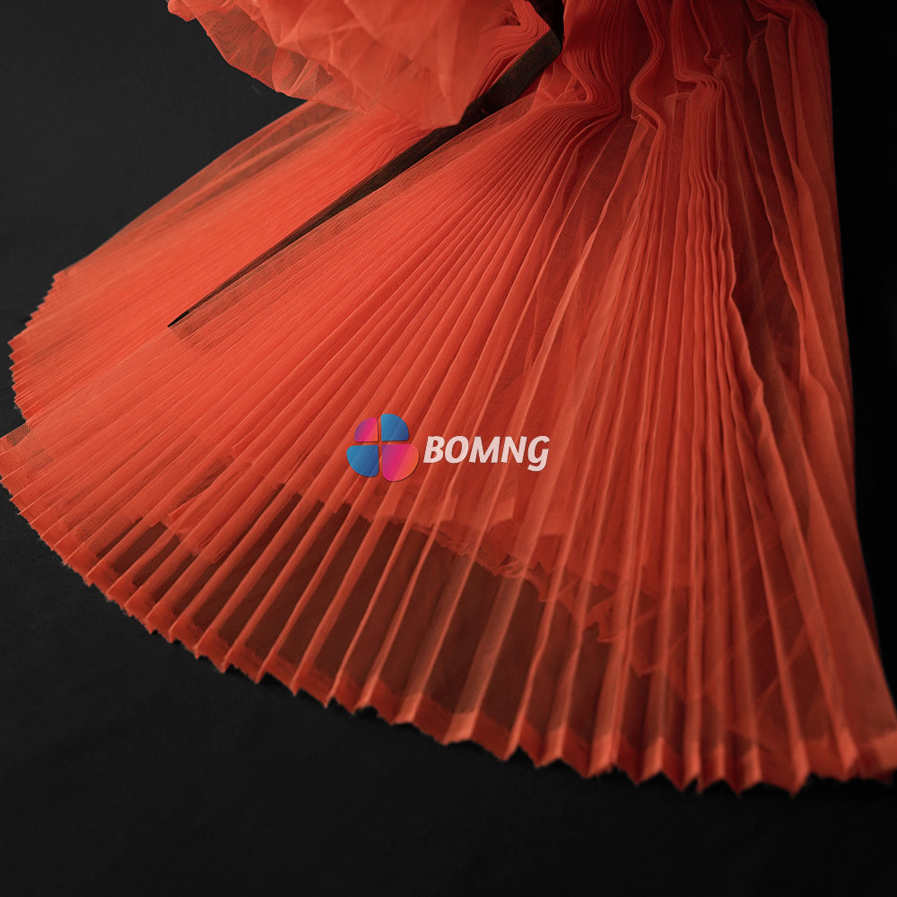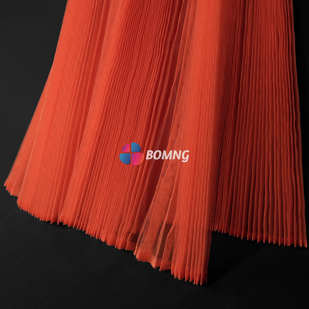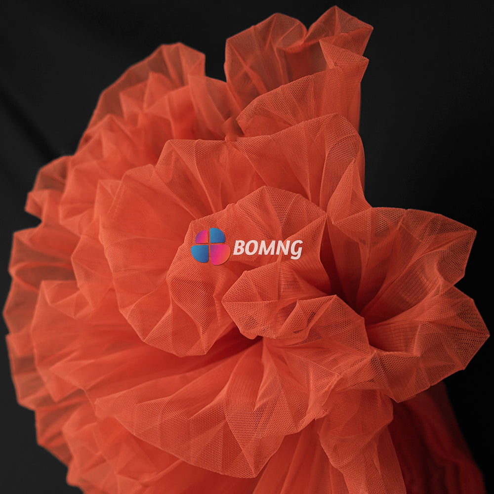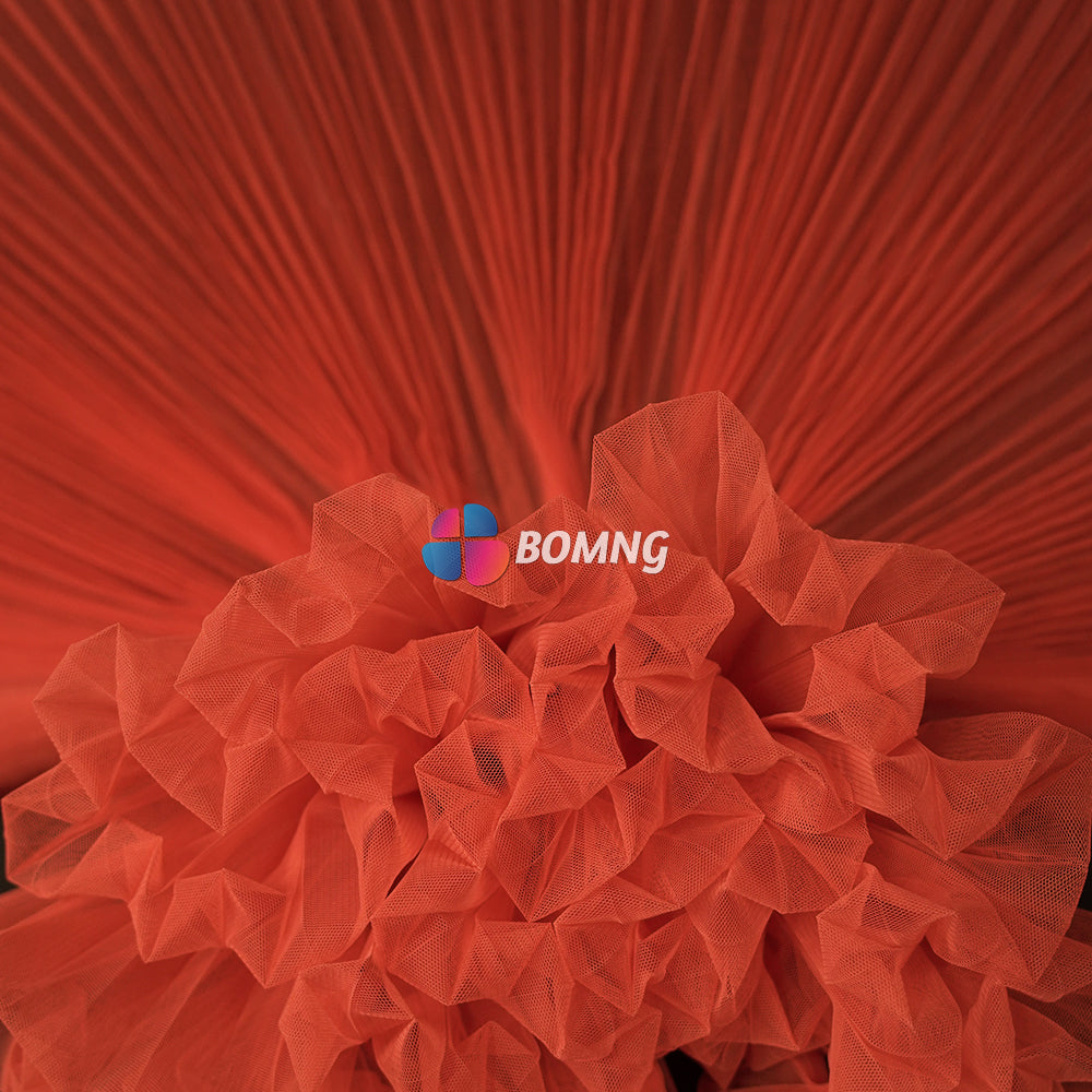 Bomng Orange Red Great Pleated Organza Crinkle Fabric 6324