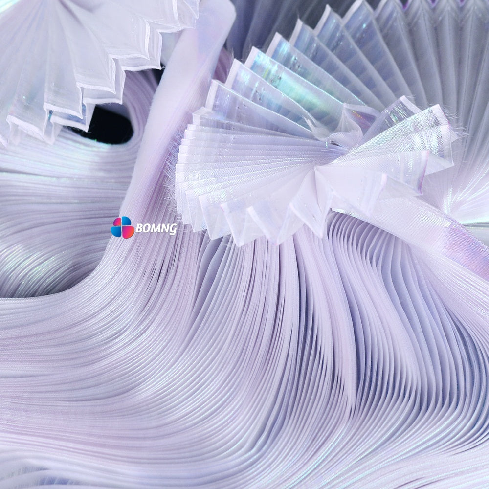 Bomng Taro White Mermaid Texture Pleated Phantom Glitter Yarn Wedding Stage Decoration Fabric